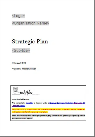 The Strategic Plan Template by tools4dev is licensed under a Creative Commons Attribution-ShareAlike 3.0 Unported License. All other content is © tools4dev.