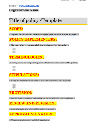A policy is a formal document developed by an organization’s leadership that guides the behavior and actions of its members. It provides clear direction to ensure effective management, consistency in decision-making, and the smooth functioning of the organization.